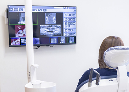 - デジタルレントゲンを使用しており、被爆量が従来の1/10です。診療台ごとに手元のPCで レントゲン画像をご確認いただけます。